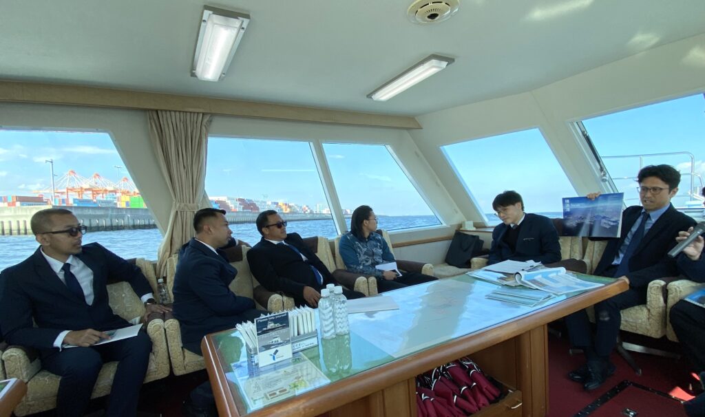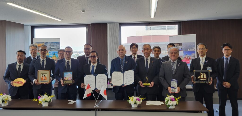 MOUは、両港の貿易促進及び海事協力、港湾運営及び管理の最適化、人材育成、グリーンポート・イニシアティブにおける協力を確認するものであり、覚書を締結した後、両港関係者による記念品交換及び海上からの横浜港の港湾施設視察を行いました。