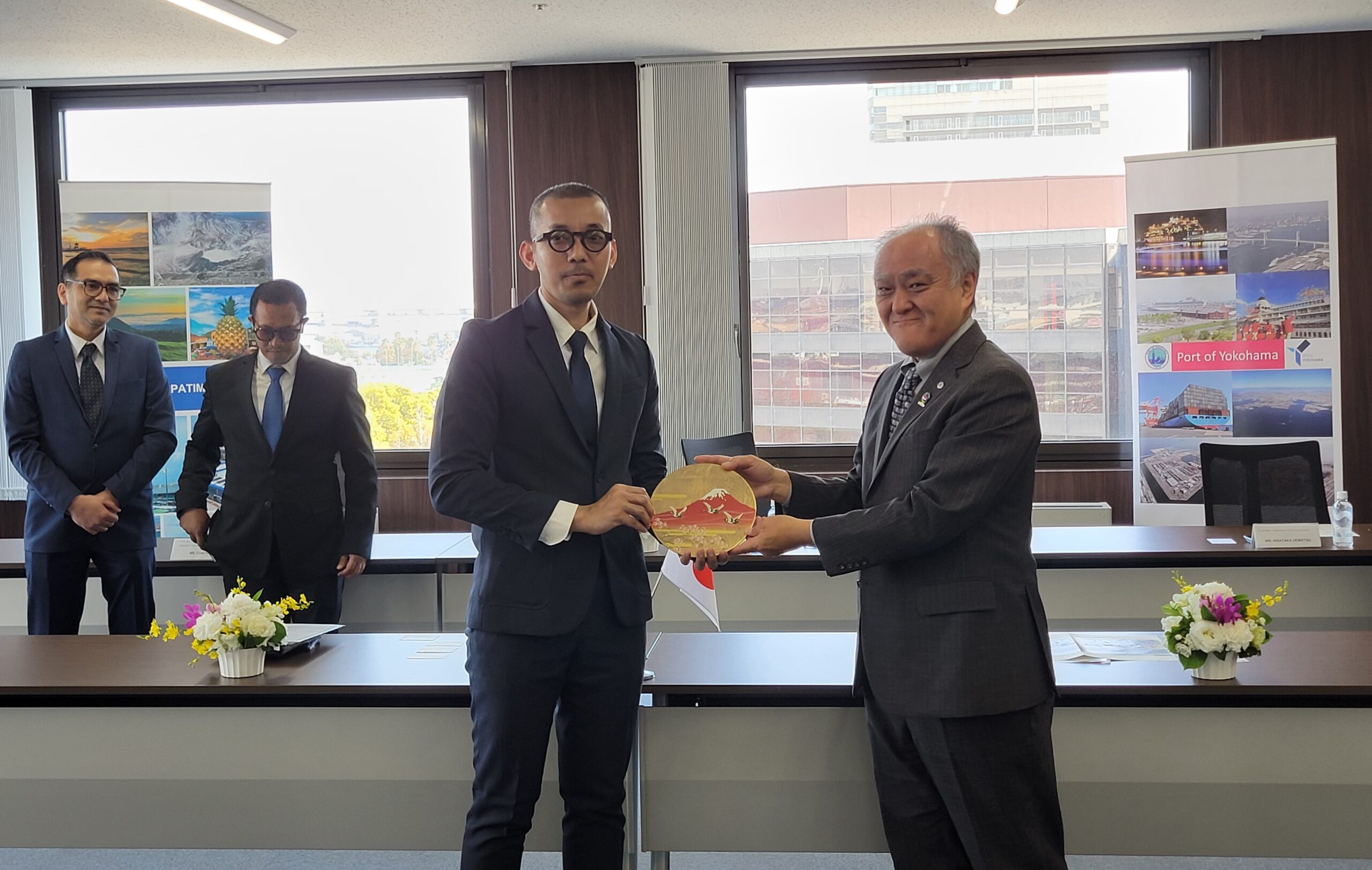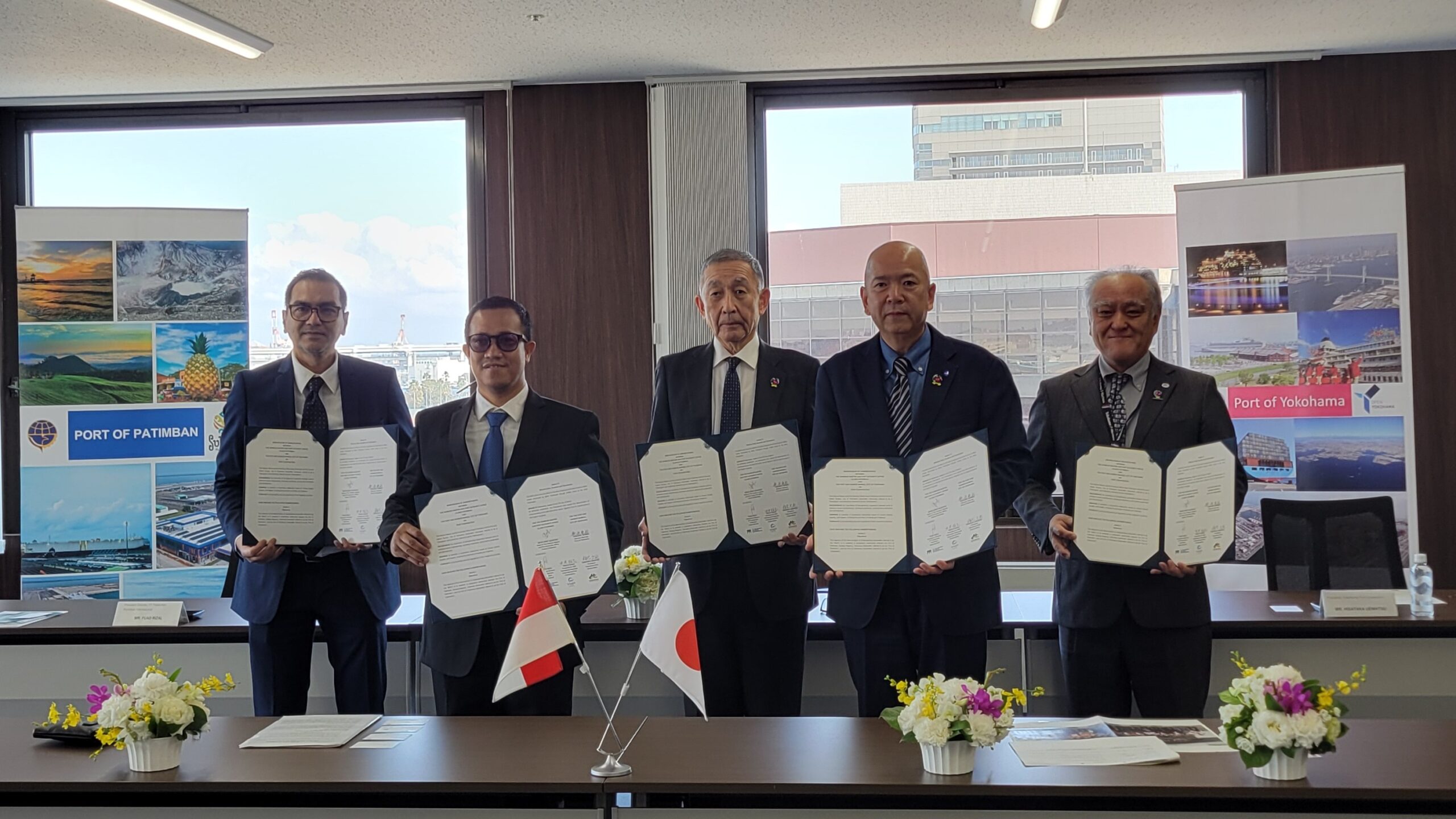 2026年3月27日、インドネシア パティンバン港 Mohd Arief Agustian氏(Head of Port Authority and Harbor Master Office Class II Patimban)と横浜市港湾局 新保局長の間で、相互協力を確認する覚書(MOU)が締結され、当社代表取締役社長 植松が証人として署名を行いました。
